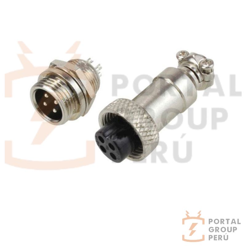 GX12 CONECTOR DE AVIACION DE 4 PIN CIRCULAR ROSCA DE 12MM MACHO + HEMBRA GX12-4PCH