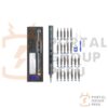 Este set de destornilladores es muy útil para satisfacer las necesidades de reparación diaria, es muy ligero, cuenta con un diseño compacto y un buen rendimiento. Es adecuado para reparar celulares, relojes, computadoras, etc. Cuenta con una caja para un fácil transporte y almacenamiento de las brocas de acero, el mango de destornillador y otras herramientas incluidas.